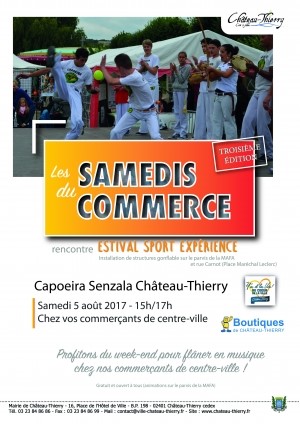 Pour la 3e édition des Samedis du commerce, la Capoeira Senzala de Château-Thierry rencontre l’Estival Sport Experience samedi 5 août à partir de 15h sur le parvis de la Maison de l’Amitié France-Amérique et rue Carnot.